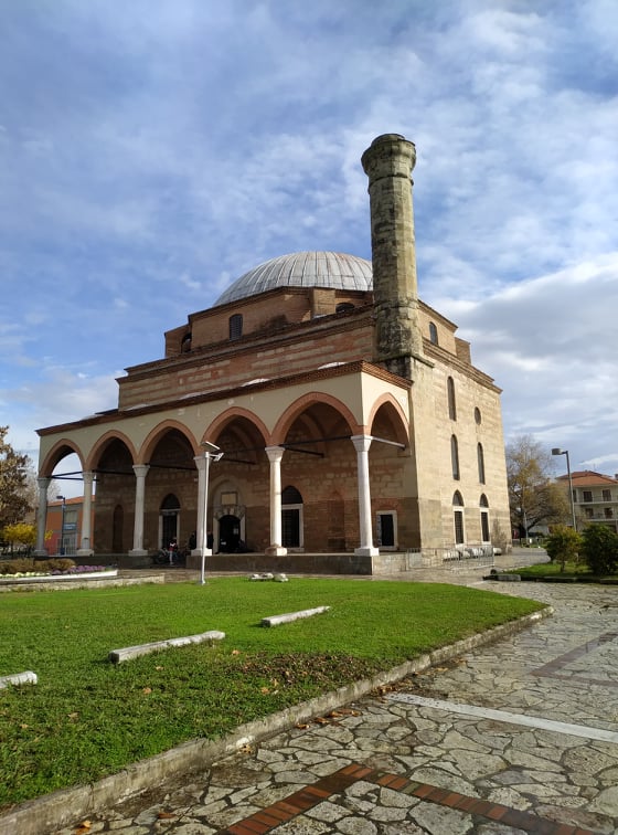 Σε απόσταση δευτερολέπτων από το Δίδυμο Οθωμανικό Λουτρό, το Κουρσούμ Τζαμί ένα από τα καλύτερα διατηρημένα τζαμιά της χώρας. Το όνομά του στα τούρκικα σημαίνει Μολυβένιο τζαμί και έχει πάρει το όνομά του από τον μολυβένιο θόλο που τον σκεπάζει. Η παράδοση θέλει τον Οσμαν Σαχ -διοικητή της οθωμανικής αυτοκρατορίας στην περιοχή- να θεραπεύεται στα Τρίκαλα από βαριά ασθένεια και σε ανταπόδοση έχτισε το επιβλητικό αυτό τζαμί.