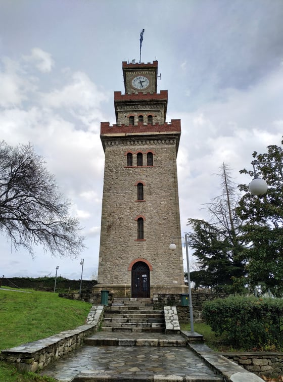 Από αυτό το σημείο η θέα στα Τρίκαλα -που απλώνονται πιάτο μπροστά σου- είναι συγκλονιστική (τόσο, που σχεδόν ξεχνάς να τη φωτογραφίσεις). Αν θες ακόμα πιο πανοραμική θέα, τότε μπορείς να ανέβεις τα σκαλοπάτια του ρολογιού και να βγεις στο περιμετρικό μπαλκόνι του -ο χρόνος προσωπικά δε μου το επέτρεψε, αλλά αν εσύ αντέχεις και έχεις το περιθώριο κάντο, αξίζει να θαυμάσεις και τη μόνιμη έκθεση φωτογραφίας που φιλοξενείται στο εσωτερικό του.